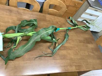 1・2枚目は給食室での様子、3枚目の写真は生産者さんにいただいたとうもろこしの苗です。