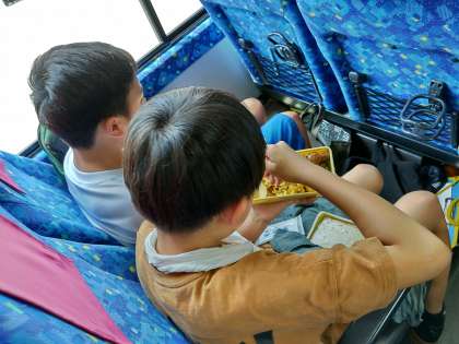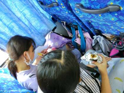 お昼ご飯は、バスの中でとらせてもらいました。同じ見学場所には、都内の他区の学校も来ていました。