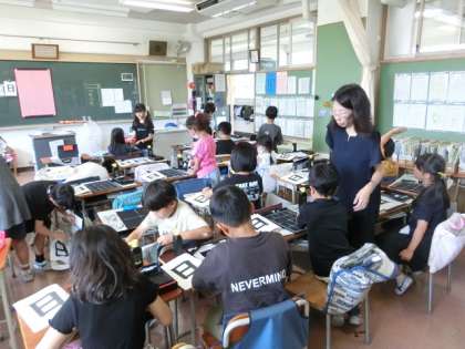 子どもたちは書きあがると、手を挙げて先生に見てもらっています。なんだかとても嬉しそうです。