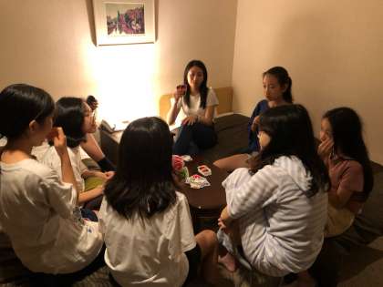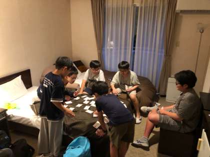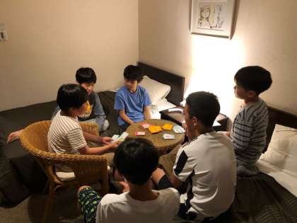 生活班ことに集まって、部屋の中でのレクタイムです。子どもたちはカードゲームなどで、楽しく遊んでいます。