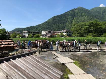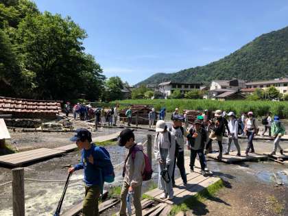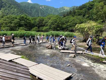 硫黄の匂いがあたり一面に漂っています。ぷくぷくと温泉がわいているのが分かります。