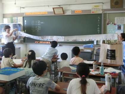 友達の作品を見て、驚きの声や質問が上がっていました。廊下に並びだした友達の作品を見て、よいところを口にしている人がたくさんいます。