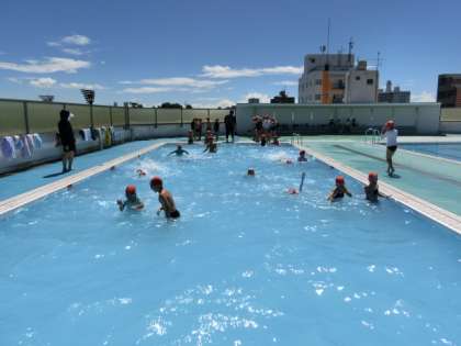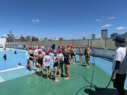 今日はとても暑いので、子どもたちはとても気持ちよさそうです。熱中症対策のため、子どもたちは水道の水をホースでかけてもらっていました。