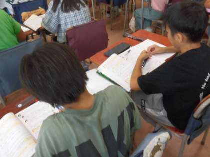 算数は、公倍数の学習です。友達と話し合いながら、課題解決にお取り組んでいます。