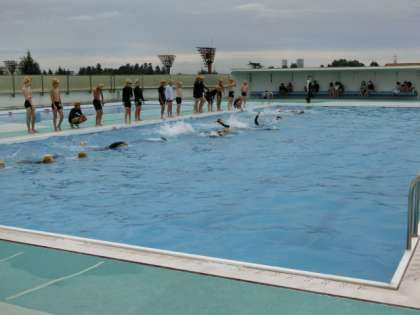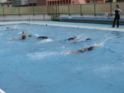 泳ぎの練習の後、プール納めでした。代表の人の言葉もとても立派でした。
