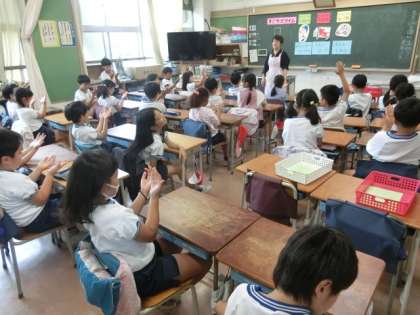 今日は1組のすこやかタイムの時間です。3年生は血液についての学習です。