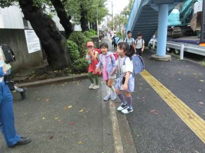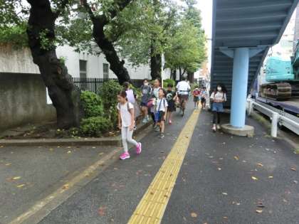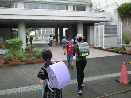 子どもたちが登校をしだした頃は、雨は降っていなかったのですが、後半になるとしっかりとした雨が降り出してしまいました。子どもたちはかさをさしての登校となりました。