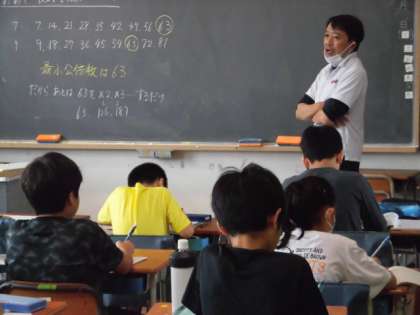 算数の公倍数の学習の確認をしています。しっかり先生や友達の話を聞き、たしかめに取り組んでいました。