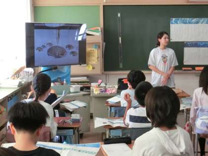 物語「やまなし」の読み取りの授業です。文中の「水銀のような」という表現に着目し、何を意味しているのかを話し合っていました。