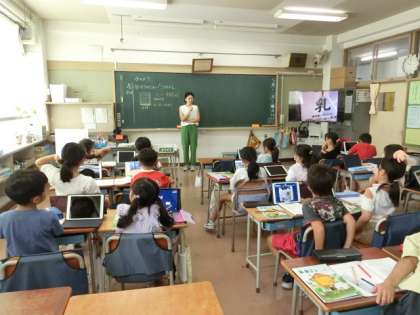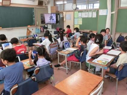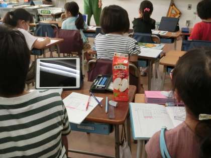 子どもたちには、なかなかイメージしにくい内容です。1Lの紙パックを持ってきている人もいます。デシリットルの単位は、普段はあまり使わないのでなじみがうすく、分かりにくいかもしれませんね。