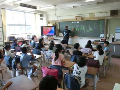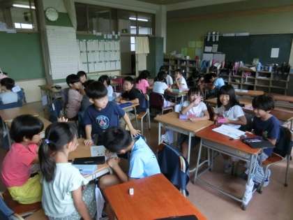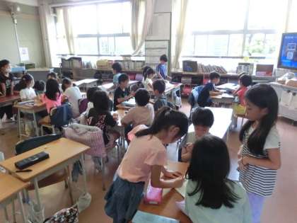 1組の教室をのぞくと、係のポスターづくりをしていました。