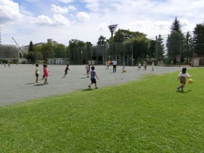 日差しがあるので、すぐに汗がでてきます。子どもたちにはしっかりと水分をとってほしいと思っています。