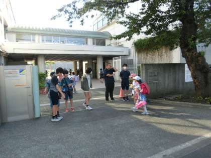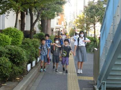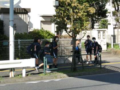 中学生のお姉さんと一緒に登校してくる人がいます。とても微笑ましい光景です。