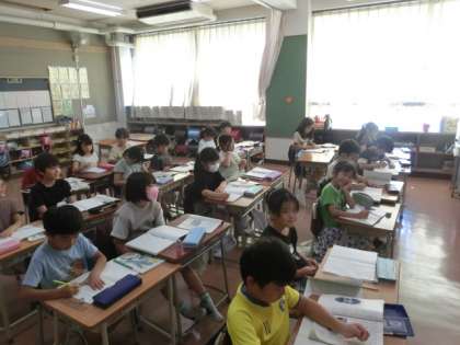説明文の学習です。文章の組み立てで、「いつ」とう内容が段落の初めにあることに気づきました。その理由を聞いてみると、子どもたちは自分の考えをしっかりと教えてくれました。文章の構成について考えることができる2年生、すごいです。