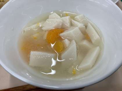 杏仁豆腐は豆乳で作りました。牛乳で作る時よりも少しクリームがかった色になります。
