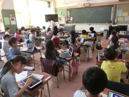 タブレットで撮った写真をもとに、楽しそうにカードにかきこんでいました。