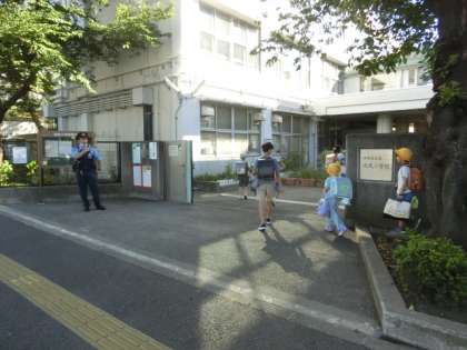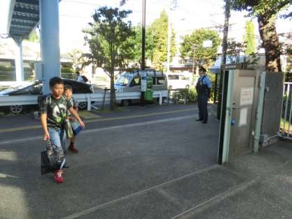 今日も池尻交番のおまわりさんが子どもたちを見守ってくれていました。