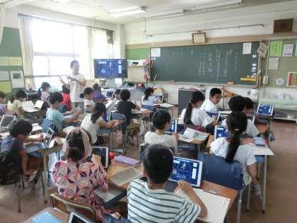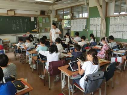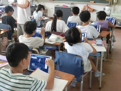 タブレットを使って、木へんの漢字を集めていました。意外と見つからず、子どもたちは頭をひねって考えていました。