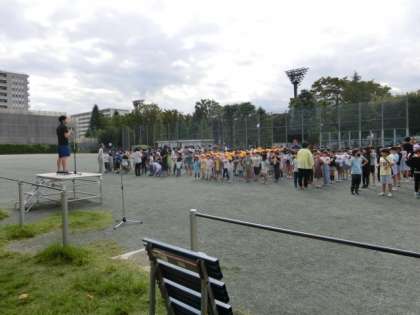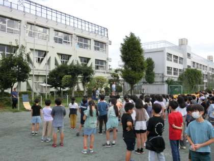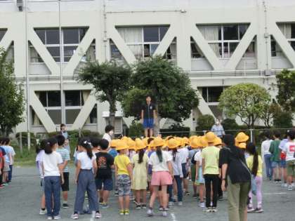 池尻小学校の子どもたちは、話の聞き方がとても上手です。朝礼台の上で話をしているとき、みんなの体は全く動きません。しっかり話を聞いていることが伝わってきます。とてもうれしいです。