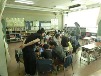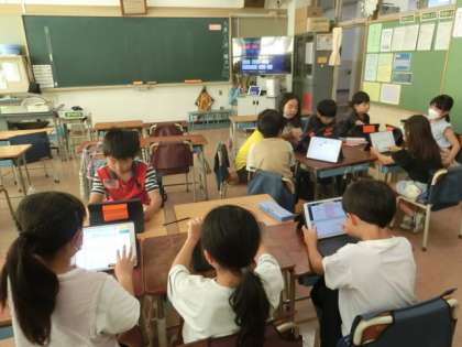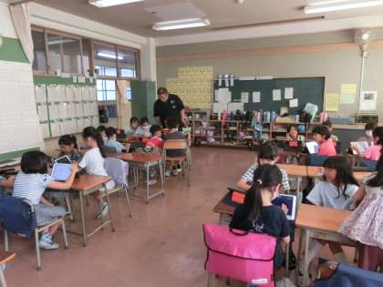 2年生の授業は生活です。今週の金曜日の行うまちたんけんの事前学習です。1組2組が混ざって、見学場所ごとに打ち合わせをしています。とても意欲的に話し合いをしています。子どもたちが楽しみにしていることが伝わってきます。