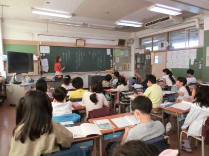 担任の先生と子どもたちとのやりとりや子どもたち同士の意見交流で授業が深まっています。