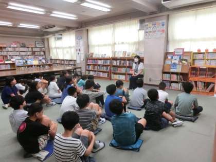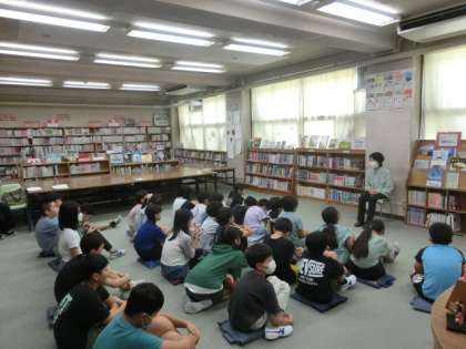 今日は5年生に「すばなしの会」の方々がいらしてくださり、お話を聞かせてくれました。本を見ずに子どもたちにお話を語る姿は、迫力があります。子どもたちは、すばなしの会の方々の話に聞き入っていました。