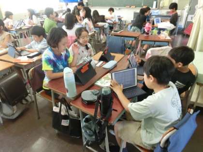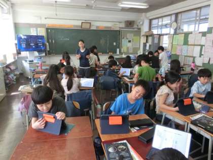 2組の授業は国語です。多義語についての学習です。学習したことをもとに、子どもたちは問題を作っています。
