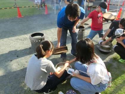 ごはんが炊き上がってきました。大釜や飯盒で炊いたお米はとてもおいしそうです。