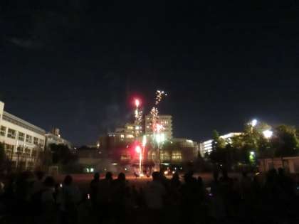 いろいろな花火が打ちあがります。あがるたびに子どもたちから歓声があがります。