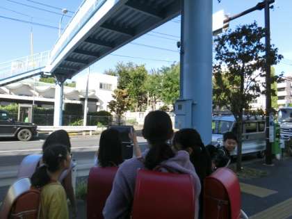 正門で、子どもたちが立ち止まっています。何をしているのか聞いてみると、「月を見つけた。」と、答えてくれました。タブレットを出して、写真を撮っています。
