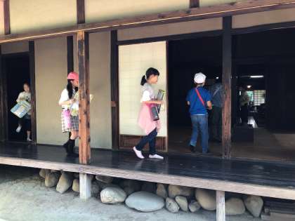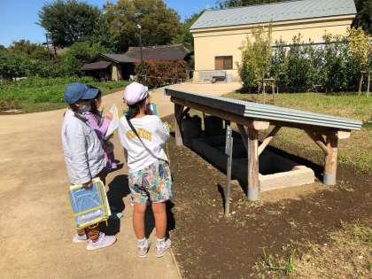 民家園の中には、昔のものがたくさんあります。子どもたちは、足を止めてメモをとっていました。