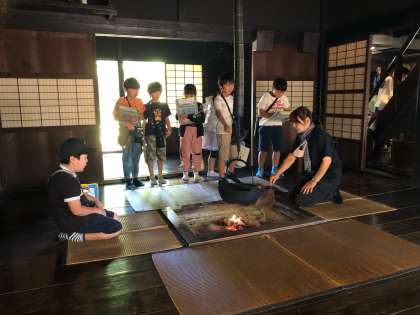 古民家の2階に上がったり、囲炉裏にあたったりもしました。