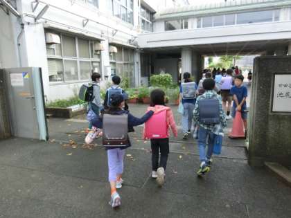 雨があがり、子どもたちはかさをささずに登校することができました。