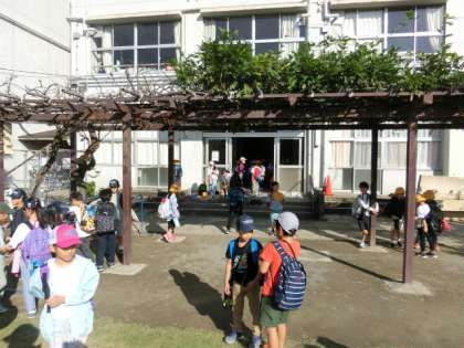 子どもたちが登校してきました。今日は1年生2年生の遠足です。リュックサックを背負った1年生2年生が嬉しそうに門をくぐります。いつもより早く登校している人が多いことからも、楽しみにしていることが伝わってきます。
