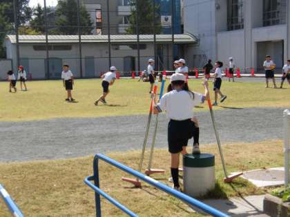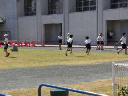 1、2年生が遠足で出かけていますが、3〜6年生も低学年に負けないくらい外でしっかり体を動かしています。