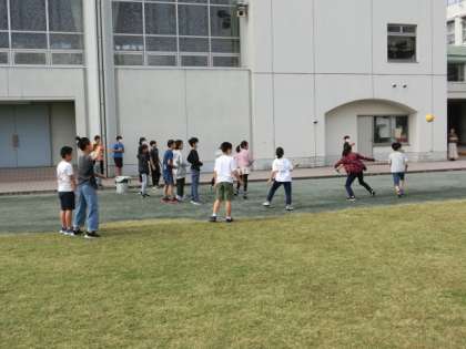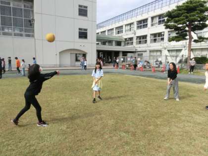 気持ちのよい秋晴れの中休みです。保護者の方々も休み時間の子どもたちの様子を見てくださっています。子どもたちと一緒に遊んでくれている方もいます。とてもありがたいです。