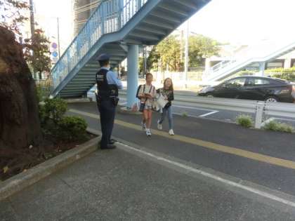 今日も池尻交番のおまわりさんが子どもたちのことを見守ってくれていました。