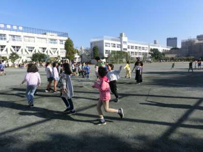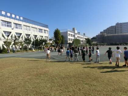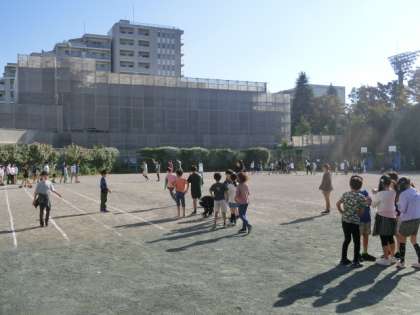クラスごとの長縄です。クラスで取り組みます。5分間で何回跳ぶことができるか回数を数えます。