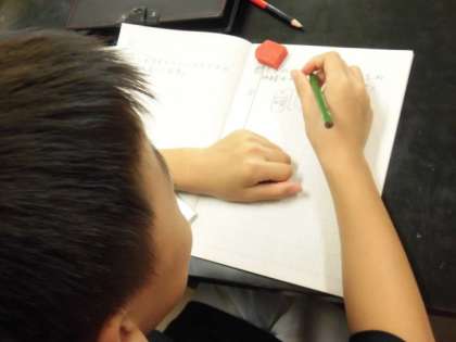 空気の温度と体積の関係を実験します。実験の手順等を確認しています。