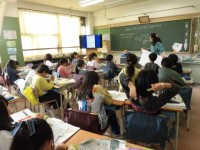 叙述をもとにして、ごんの気持ちを読み取っています。先生の発問に対して、子どもたちは真剣に考え、発言をしていました。