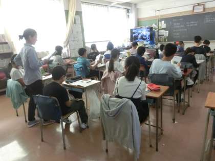 2組の授業は、国語です。説明文の学習です。各段落に小見出しをつけていきます。内容が理解できていないと、小見出しをつけることができません。同じような小見出しにならないようにしっかりした読み取りが必要です。