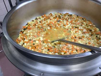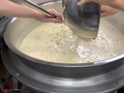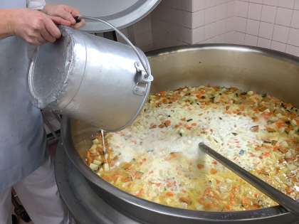給食のシチューには隠し味い生クリームと粉チーズを入れています。