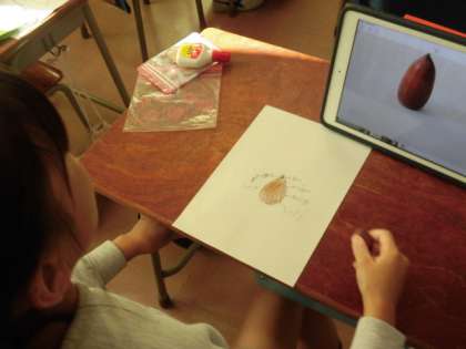 生活科では、どんぐりを使った作品づくりに取り組んでいます。どんぐりを観察し、観察記録を書き上げた後は、ボンド等を使って作品づくりです。