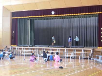 体育館で立ち位置の確認をしたり、出入りの動きの確認をしています。学芸会は来週に近づいてきています。子どもたちの演技、楽しみにしています。