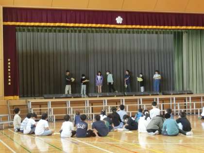 5年生は体育館で学芸会の練習をしていました。