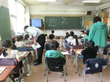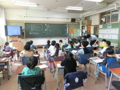 繰り上がりのたし算の学習です。たす数をサクランボのように二つに分け、たされる数と合わせて10になるように考えています。