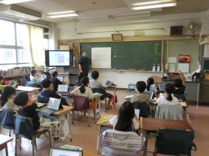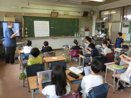 タブレットの書き込み機能を使って、自分の考えを説明していました。タブレットをうまく使うと、自分の考えをすぐにみんなに伝えることができます。