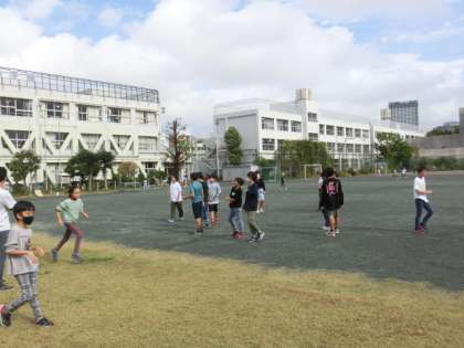 中休みになりました。2時間目の最中に一時はげいい雨が降り、中休みは校庭に出ることができないかと思われましたが、雨はすっかりあがり、いい天気になっています。