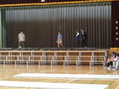 セリフだけではなく、ステージへの出入りの仕方やセリフを言っていない人の動きにも気を付けて練習をしていました。本番が楽しみです。