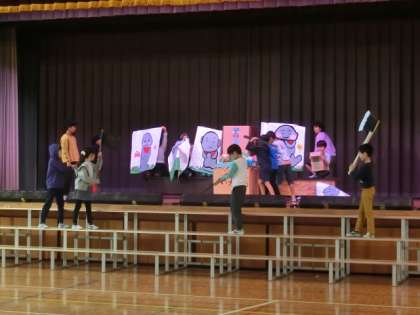 舞台の上を大きく使うことができてきました。子どもたちが楽しそうに演じています。